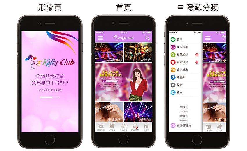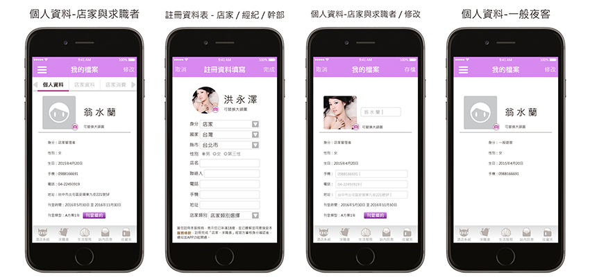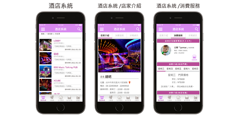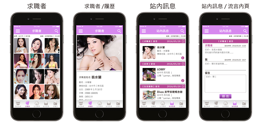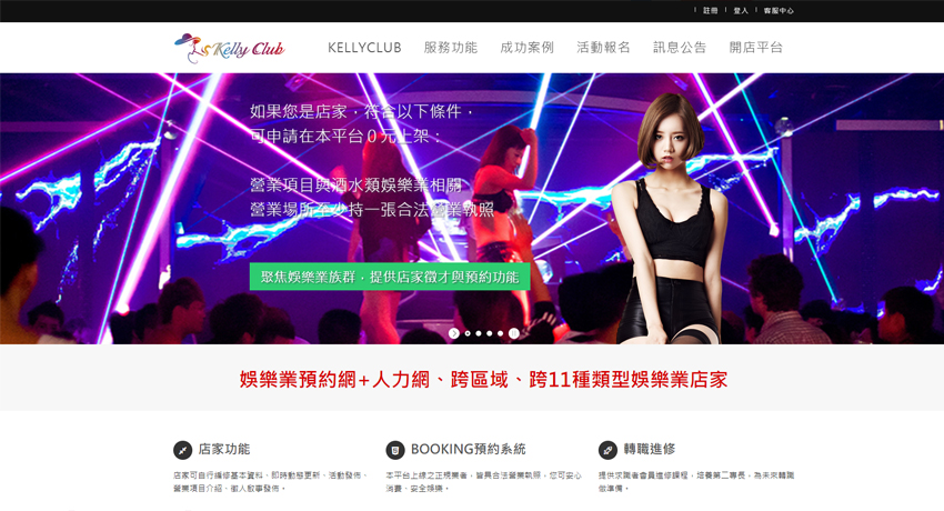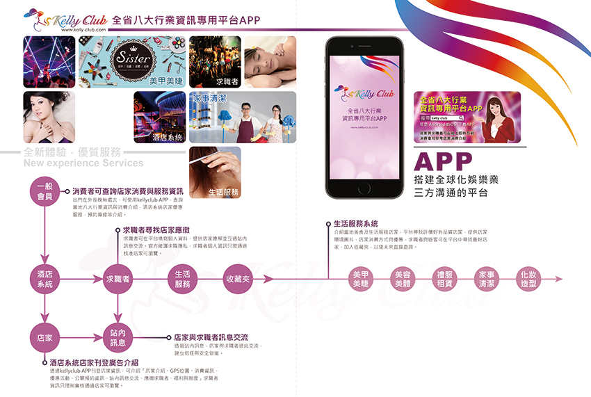 鎖定娛樂業族群,平台上線店家皆經平台實地查核,確認店家介紹與營業執照屬實,為求職者與消費者把關,提供正規業者及中宣傳平台。